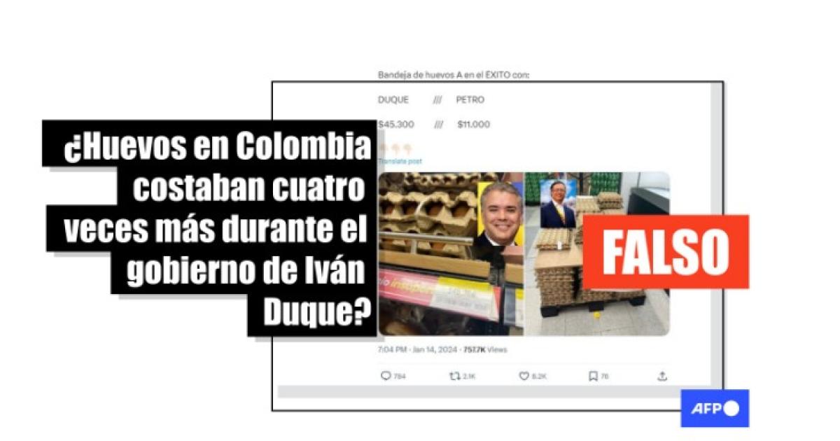 Es decir, una cubeta de 30 huevos con el valor máximo que alcanzó el producto durante el mandato de Duque rondaría los 15.150 pesos, y no 45.300 como dice la imagen viralizada.