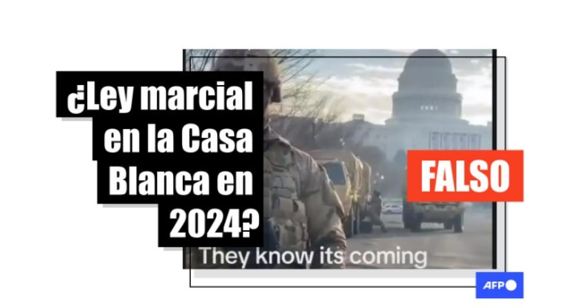 “ÚLTIMA HORA: LEY MARCIAL en plena Casa Blanca en Washington!!”, dicen publicaciones en Facebook (1, 2), Telegram, TikTok y X (1, 2).