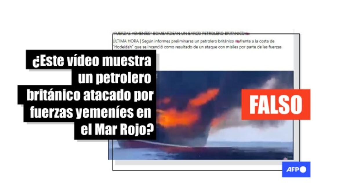 “‘FUERZAS YEMENÍES’ BOMBARDEAN UN BARCO PETROLERO BRITÁNICO. ÚLTIMA HORA | Según informes preliminares un petrolero británico frente a la costa de "Hodeidah" que se incendió como resultado de un ataque con misiles por parte de las fuerzas yemeníes”, asegura una publicación en Facebook. Mensajes similares fueron compartidos también en X.