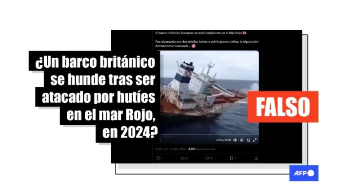 Un barco hundido en Brasil, en 2020, se difunde como si fuera un ataque en el mar Rojo en 2024