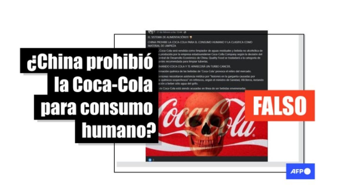 “En China, Coca-Cola se venderá como limpiador de aguas residuales y Coca-Cola, bebida sin alcohol, será producida por la empresa estadounidense Coca-Colla Company según la decisión del Comité Central de Desarrollo Económico de China. Coca Cola pasará a la categoría de desinfectantes recomendados para limpieza de tuberías”, dice el mensaje compartido en Facebook (1, 2) y X.