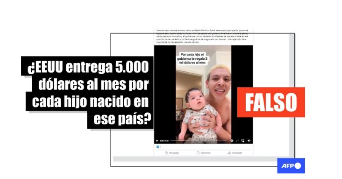 No existe un subsidio de 5.000 dólares mensuales a familias por cada hijo nacido en EEUU