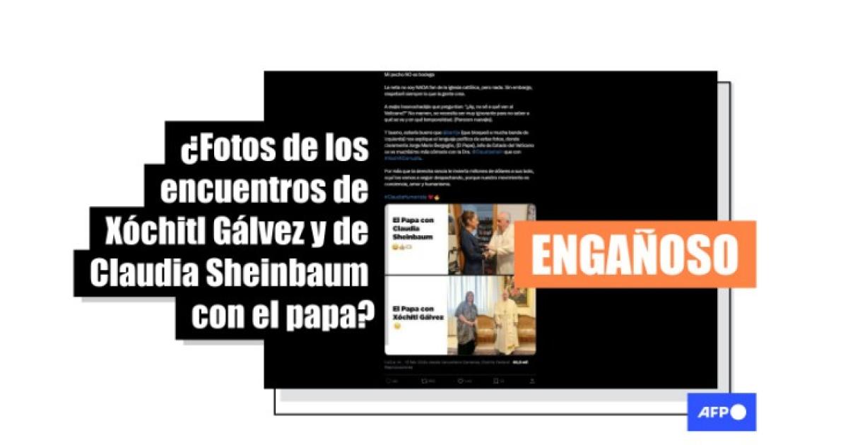 “(...) claramente Jorge Mario Bergoglio, (El Papa), Jefe de Estado del Vaticano se ve muchísimo más cómodo con la Dra. Claudiashein que con XochitlCorrupta”, afirma una de las publicaciones que comparten la imagen en Facebook (1, 2) y X (1, 2).