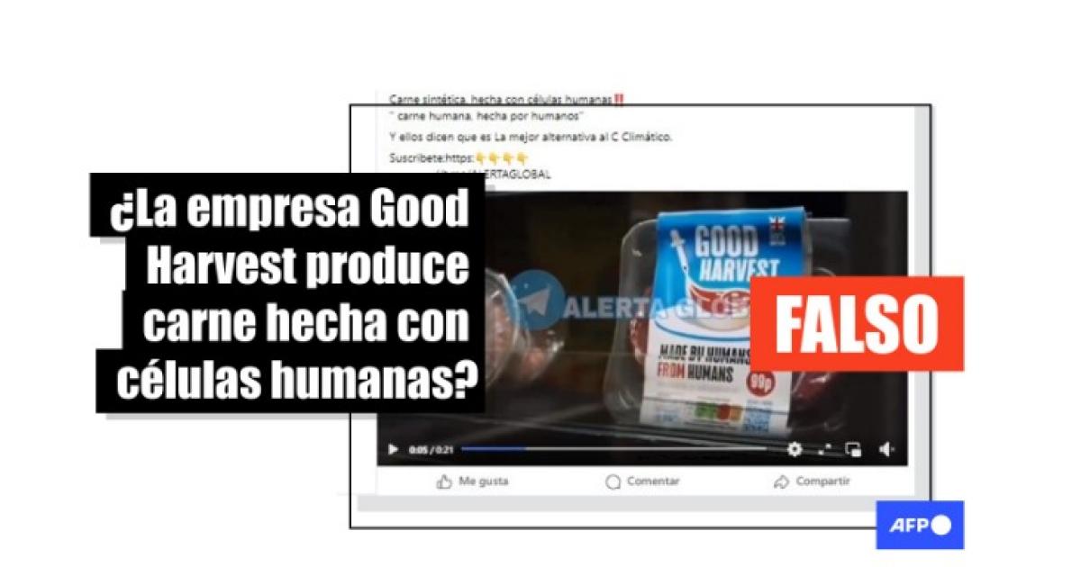 Las entradas viralizadas comparten un vídeo de 21 segundos con un narrador que habla en inglés sobre la “carne hecha con células humanas”. “Soy Gregg Wallace y voy a visitar ‘Good Harvest’, donde cada día se producen seis toneladas de carne humana”, añade. En la grabación también se muestran imágenes de una fábrica que supuestamente produce carne humana. En una escena, una persona con una bata azul lleva una caja blanca con la etiqueta “tejido humano en tránsito”.
