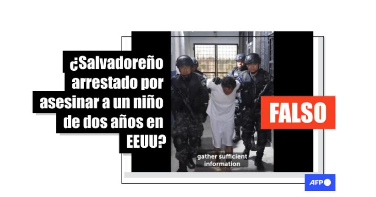 Un video en el que se ve a policías esposando a un hombre vestido de blanco corresponde a la detención del presunto feminicida de una niña en El Salvador y no al arresto de una persona en Estados Unidos por el asesinato de un niño de dos años, contrario a lo que afirman publicaciones compartidas más de 3.000 veces en redes desde el 28 de febrero de 2024. El hombre fue procesado por las autoridades salvadoreñas por los delitos de feminicidio, violación y privación de libertad contra una menor de 7 años de edad del país centroamericano en octubre de 2023.