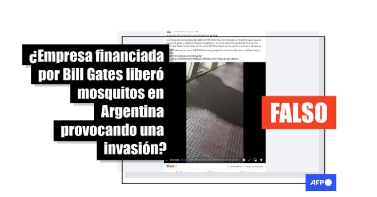 “Los mosquitos de la granja del diablo Kill Bill Gates han sido liberados en Argentina para que les pique a la gente y causen el dengue”, se lee en una publicación en Facebook junto a un video donde se ve una aglomeración insectos sobre una vereda a la salida de un comercio. Afirmaciones similares se difunden en X.