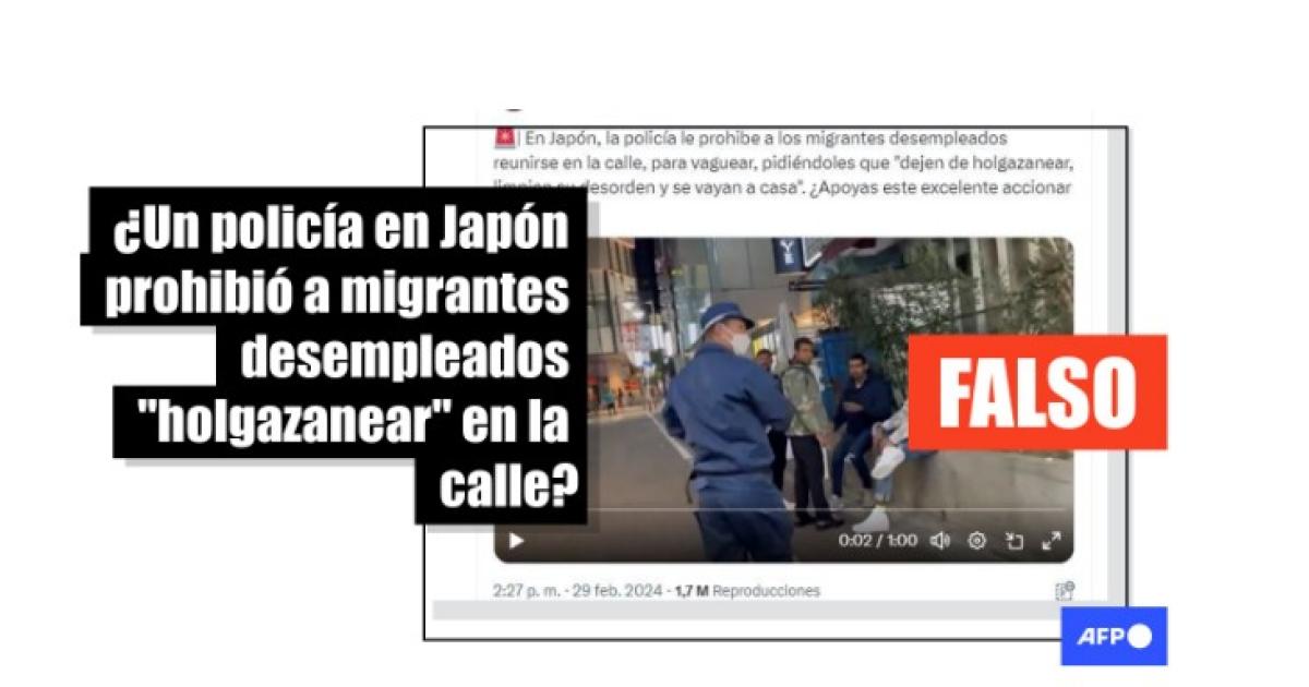 “En Japón, la policía le prohibe a los migrantes desempleados reunirse en la calle, para vaguear, pidiéndoles que ‘dejen de holgazanear, limpien su desorden y se vayan a casa’. ¿Apoyas este excelente accionar policíal?”, dicen las publicaciones en Facebook (1, 2, 3) y X.