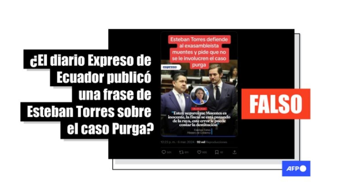 Consultada por la AFP, Gianella Espinoza, editora de redes sociales de Expreso, negó que la placa hubiera sido publicada por el medio.
