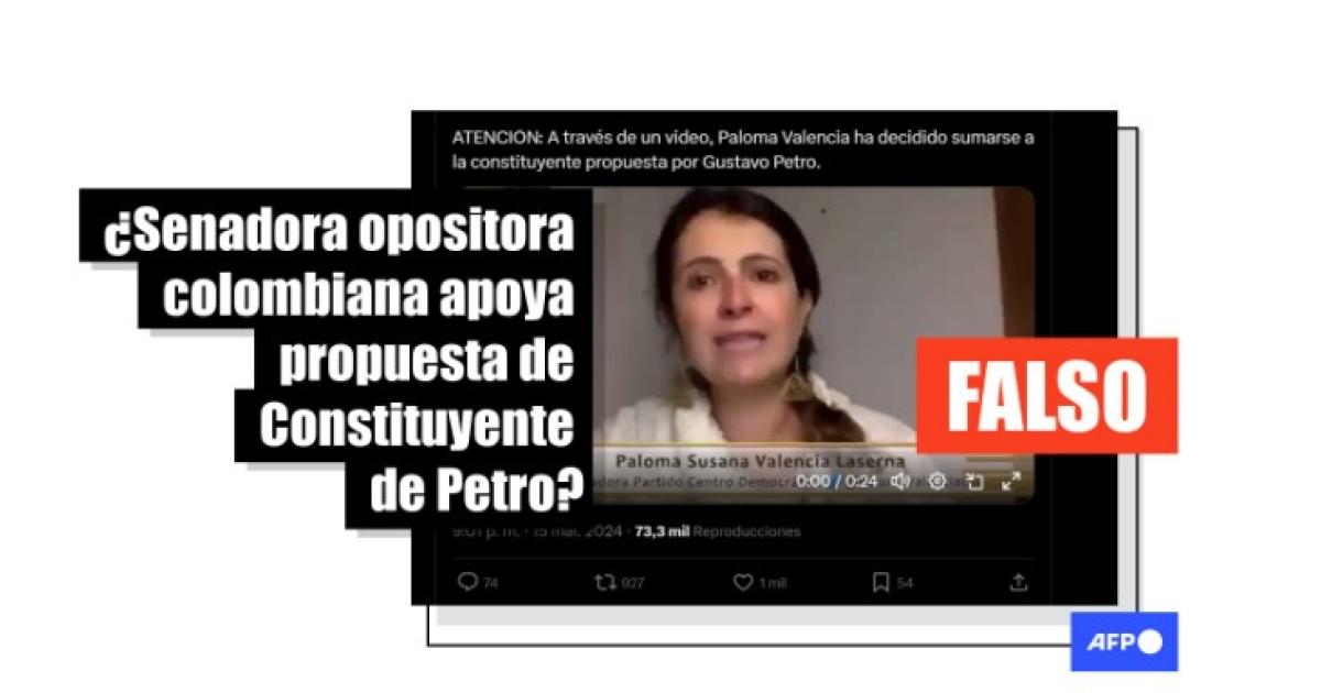 El video viral de 24 segundos muestra a la senadora Valencia diciendo: “(...) con una justicia politizada, cuyos ojos están abiertos para ver a quién le aplican la ley y cómo. Hoy queremos proponerle al país una Constituyente donde podamos reformar toda la justicia, y estas ideas que le ha presentado este partido durante tantos años a Colombia, se conviertan en una realidad”.