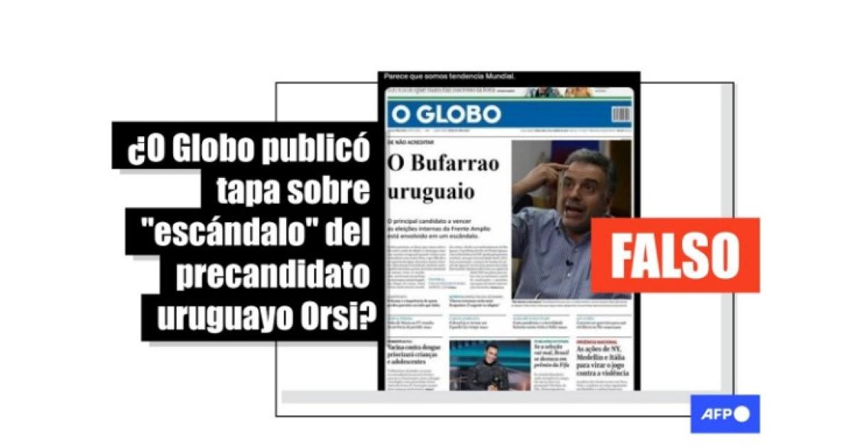 “De no creer. El ‘bufarrao’ uruguayo. El principal candidato a vencer en las elecciones internas del Frente Amplio está involucrado en un escándalo”, se lee en la supuesta tapa que el diario brasilero O Globo habría publicado en marzo de 2024.