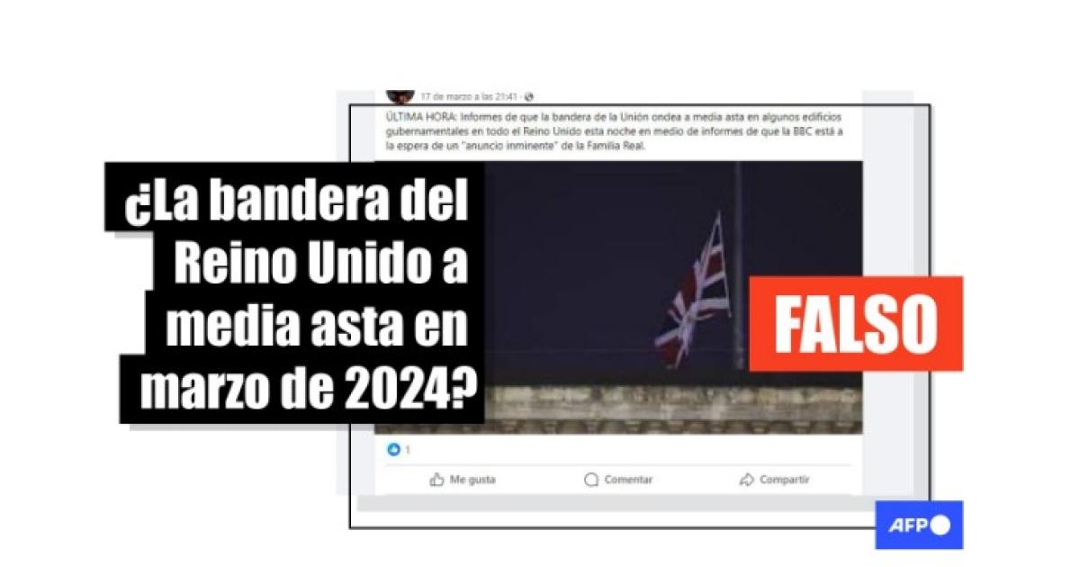 “Informes de que la bandera de la Unión ondea a media asta en algunos edificios gubernamentales en todo el Reino Unido esta noche en medio de informes de que la BBC está a la espera de un ‘anuncio inminente’ de la Familia Real…”, se lee en publicaciones que comparten la fotografía en X y Facebook.