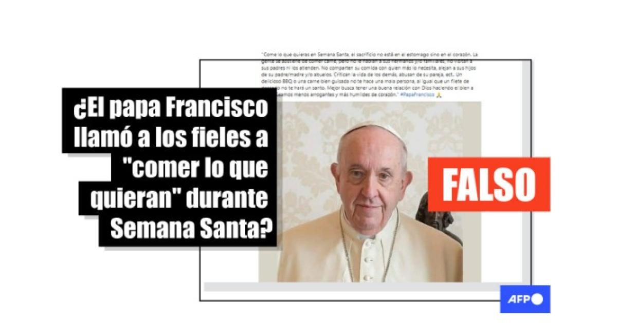 La frase “coman lo que quieran en Semana Santa” no es del papa y circula desde 2018