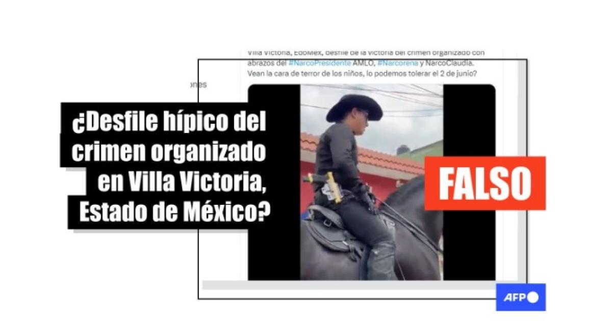 “Villa Victoria, EdoMex, desfile de la victoria del crimen organizado con abrazos del #NarcoPresidente AMLO, #Narcorena y NarcoClaudia. Vean la cara de terror de los niños, lo podemos tolerar el 2 de junio?”, dicen publicaciones en X (1, 2) y Facebook.