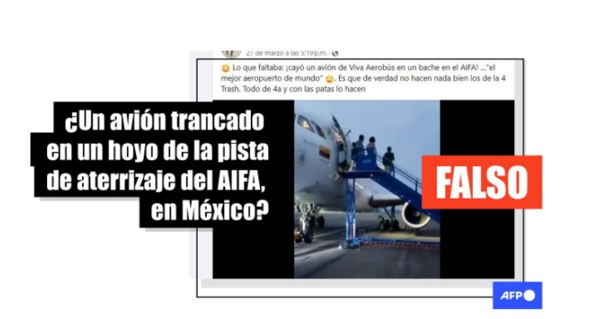 Video de un avión atrapado en un bache de una pista se grabó en Colombia, no en el AIFA de México