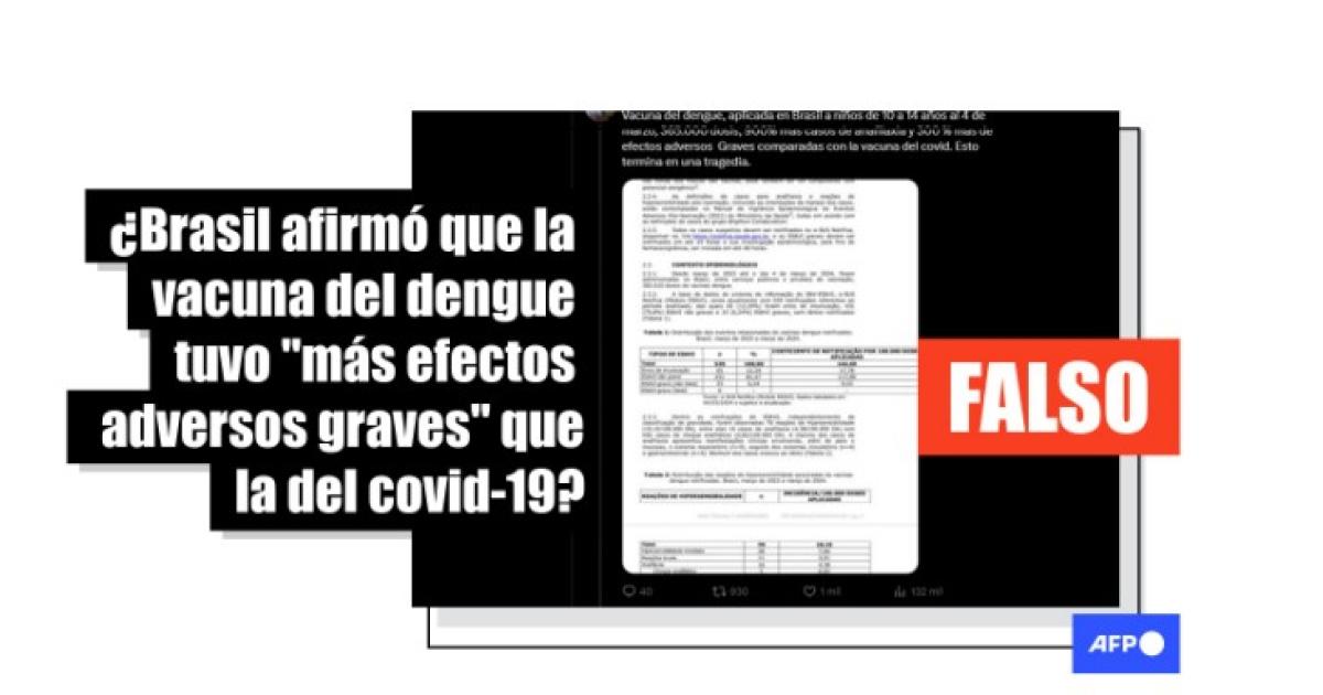 Barbosa también destacó que “en ninguna parte del documento se compara el número de anafilaxias que se produjeron en la vacuna contra el dengue con la vacuna contra el covid, por lo que la afirmación (...) ni siquiera tiene sentido”.