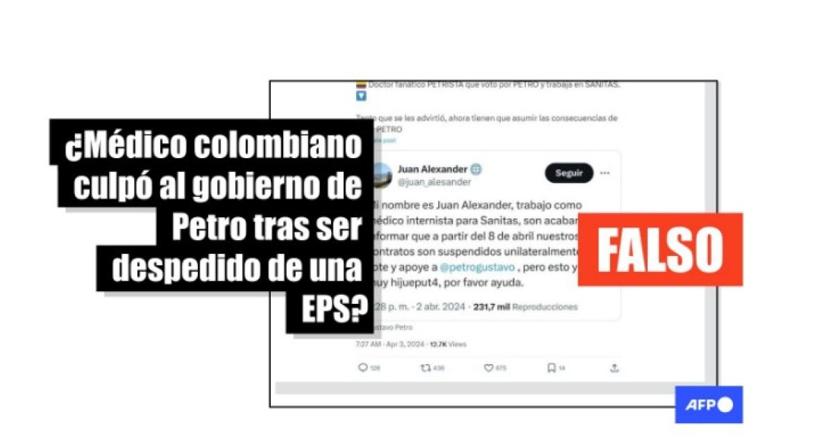 Es falso el mensaje de un supuesto médico colombiano contra Petro por intervenir una EPS