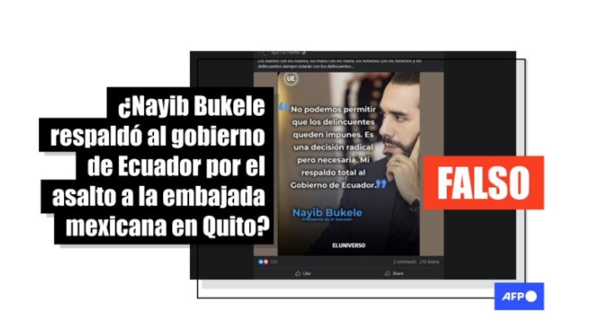 El Universo no publicó supuesta frase de Bukele respaldando a Ecuador tras irrupción en embajada