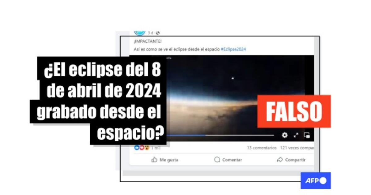 “Así es como se ve el eclipse desde el espacio #Eclipse2024”, se lee en publicaciones en Facebook (1, 2, 3) que comparten video de 41 segundos en el que se ve un eclipse solar filmado desde altura.