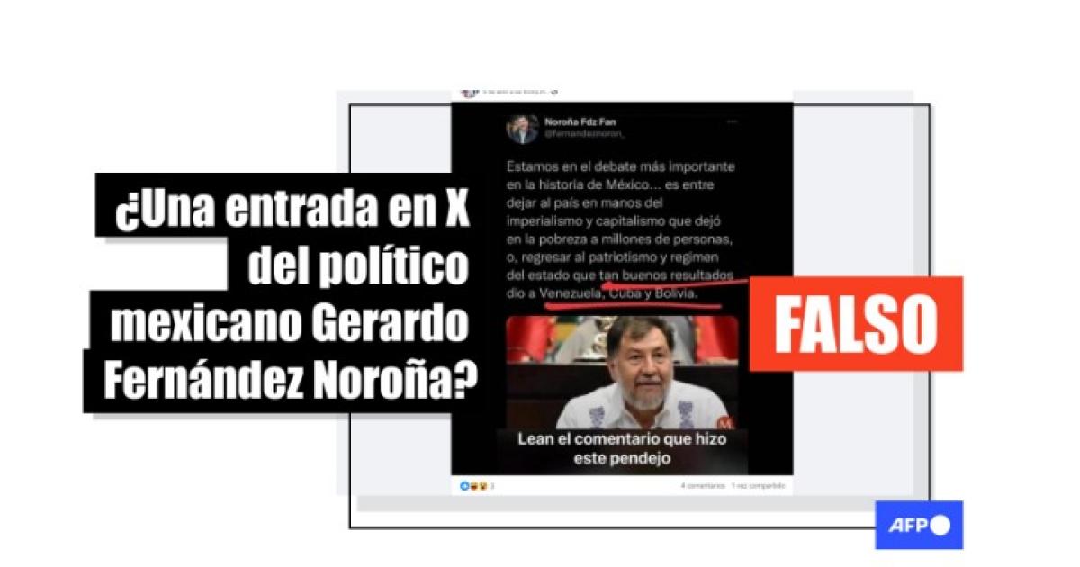 En abril de 2022, consultada por AFP Factual, Adriana Sánchez, auxiliar de la oficina del legislador, confirmó que la publicación es apócrifa. “Esa cuenta no es del diputado Gerardo Fernández Noroña”, dijo.