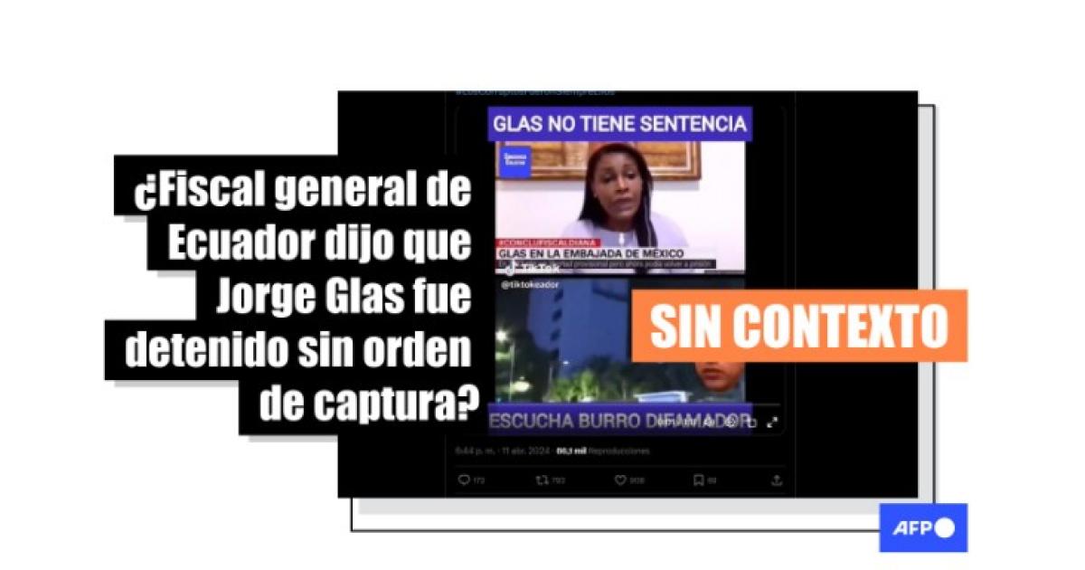 Los cortes de la grabación difundida en redes omiten un fragmento en el que el entrevistador dice: “[Glas] sí sería retenido, pero por el caso ‘Reconstrucción’, acusado de peculado. Ese es el caso que lo tendría entonces en situación de búsqueda, localización y detención. El otro sería una colaboración, que no tiene por qué ser retenido”, a lo que la fiscal aclara que no existe una orden de detención contra Glas.