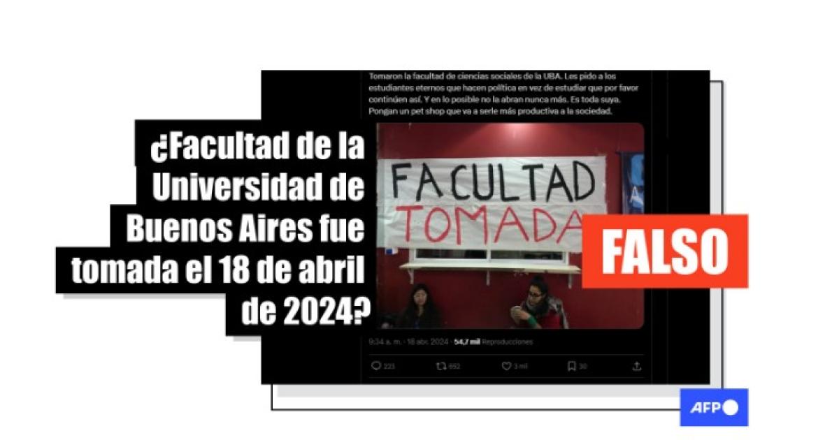 La presidenta del Centro de Estudiantes de la Facultad, Ludmila Peralta, indicó a AFP Factual que el edificio no había sido tomado por estudiantes el 18 de abril, y que continuaba con actividades normales antes de la marcha universitaria del 23.