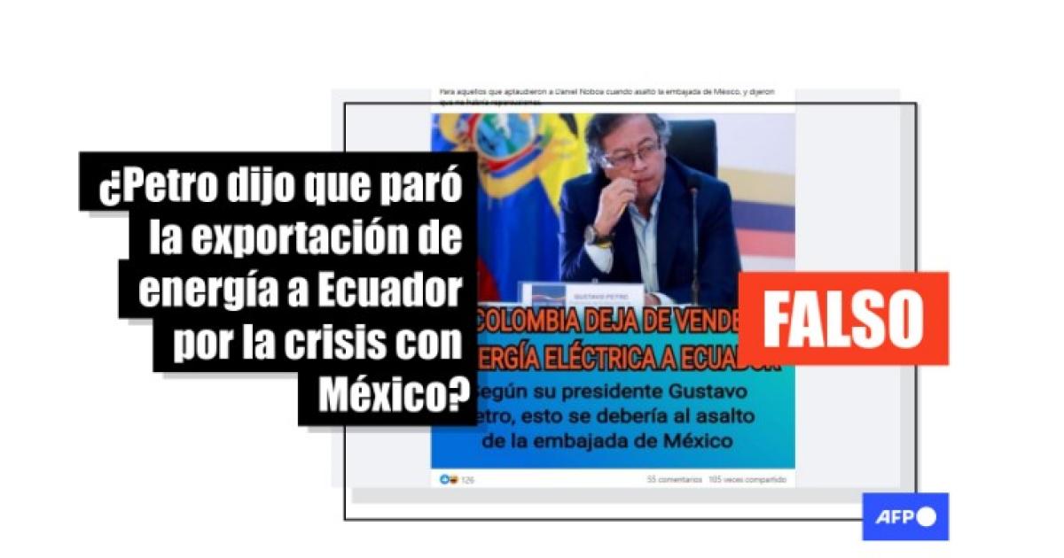 Las entradas muestran una imagen del presidente Gustavo Petro con un texto superpuesto que dice “Colombia deja de vender energía eléctrica a Ecuador. Según su presidente Gustavo Petro, esto se debería al asalto de la embajada de México”.