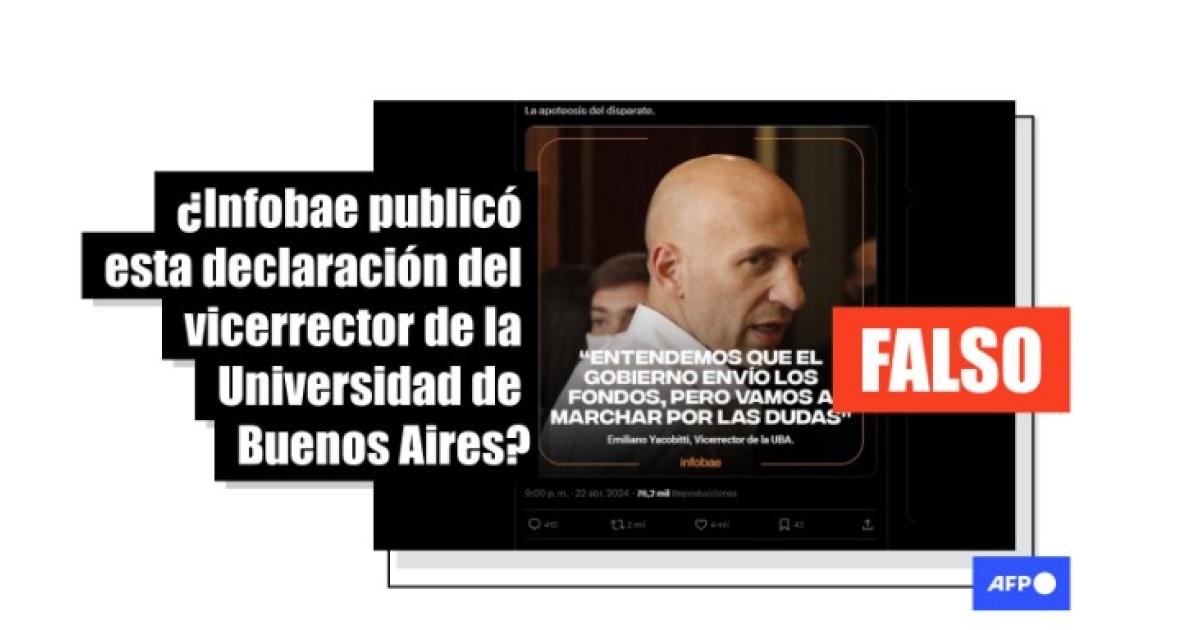 “Entendemos que el gobierno envío los fondos, pero vamos a marchar por las dudas”, reza la frase que circula en X, Facebook e Instagram, adjudicada al medio argentino Infobae y a Yacobitti, vicerrector de la UBA.