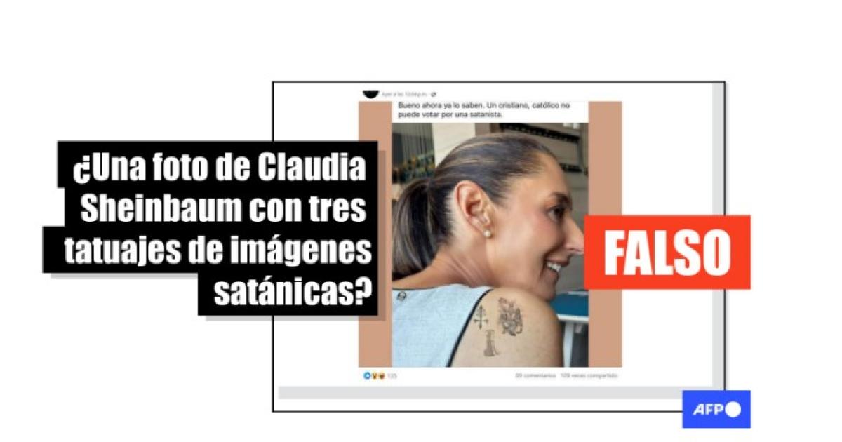 Foto de la candidata mexicana Sheinbaum con tres tatuajes alusivos al “satanismo” es un montaje