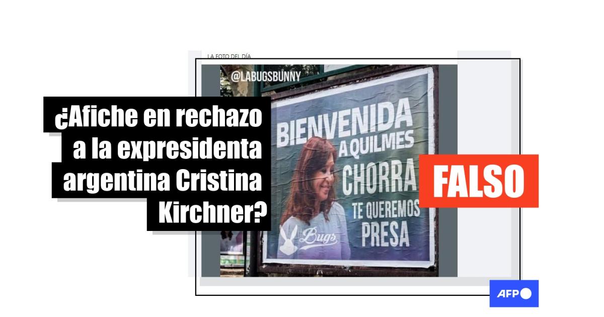El 27 de abril de 2024, la expresidenta argentina, Cristina Fernández de Kirchner, dio un discurso en la inauguración del microestadio "Presidente Néstor Kirchner" en Quilmes, provincia de Buenos Aires. Desde entonces, más de 6.000 usuarios comparten en redes sociales la fotografía de un supuesto cartel en la vía pública donde se lee: “Bienvenida a Quilmes chorra te queremos presa”. Sin embargo, se trata de un montaje sobre un afiche que decía “Bienvenida a Quilmes”. Desde la intendencia de la localidad confirmaron a la AFP que no se colocaron carteles con esa inscripción.
