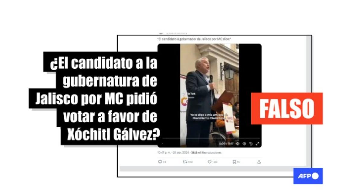 Tannia Rosas, representante de Comunicación de Movimiento Ciudadano, confirmó el 30 de abril de 2024 a AFP Factual que “es mentira” que Lemus haya pedido votar por Gálvez y que ninguno de los candidatos o miembros del partido ha promovido tal acción.