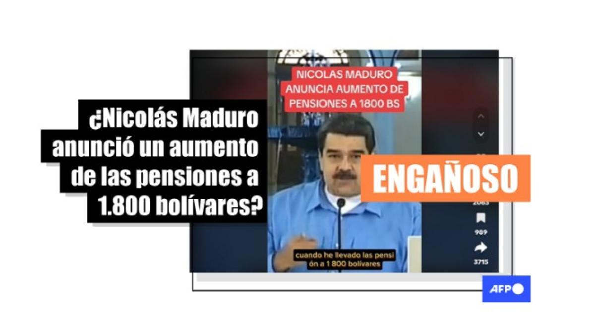 “NICOLAS MADURO ANUNCIA AUMENTO DE PENSIONES A 1800 BS”, dicen publicaciones compartidas en TikTok y Facebook (1, 2).