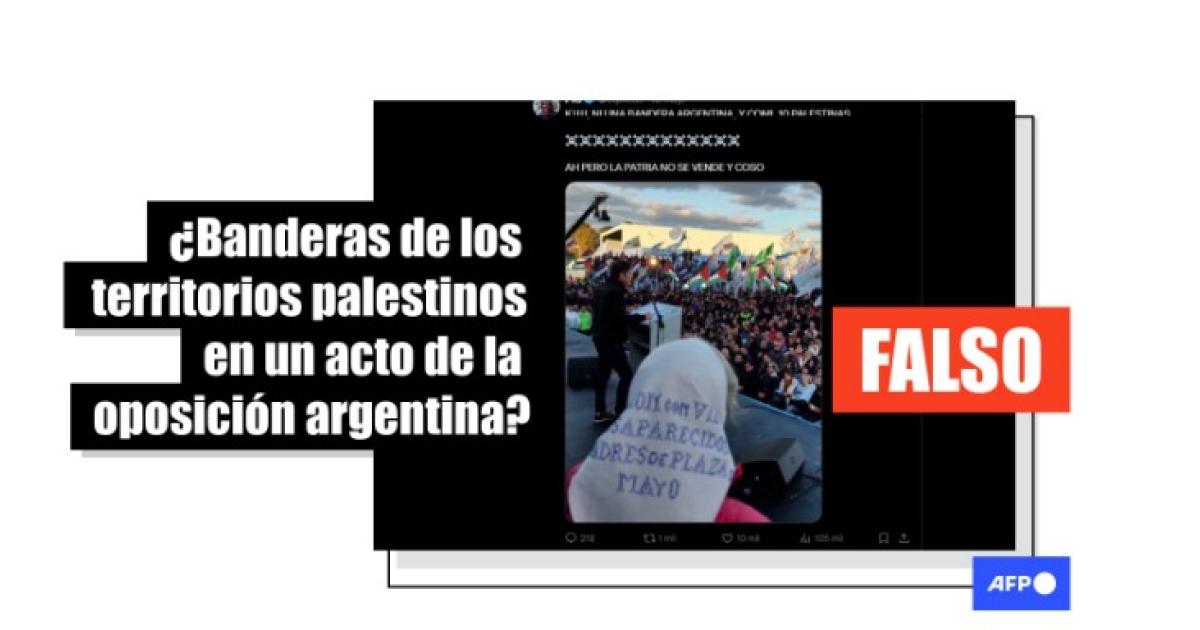 La foto de un acto partidario en Argentina con banderas palestinas es un montaje