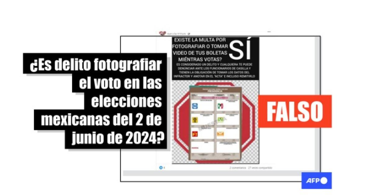 “Existe la multa por fotografiar o tomar video de tus boletas mientras votas? Sí. Es considerado un delito y cualquiera te puede denunciar ante los funcionarios de casilla y tienen la obligación de tomar los datos del infractor y anotar en el ‘acta’ e incluso remitirlo”, dice una imagen difundida en Facebook.