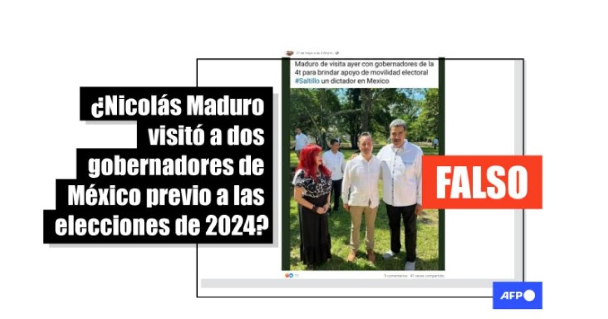 Las publicaciones virales también señalan que Maduro estuvo en Saltillo (norte) previo a los comicios. Pero AFP Factual no encontró registros de una visita del mandatario a esa ciudad en lo que va de 2024.