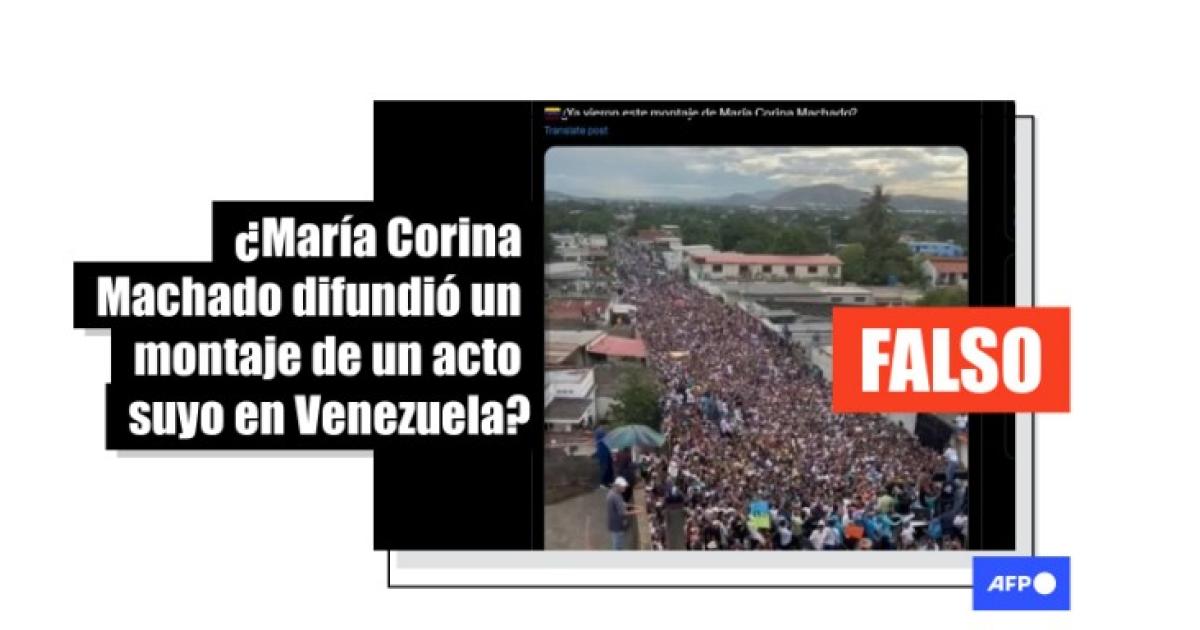 “Vean el burdo montaje del equipo de propaganda de @MariaCorinaYA”, dicen publicaciones compartidas en X. Mensajes similares circulan en Facebook, Instagram y sitios web.