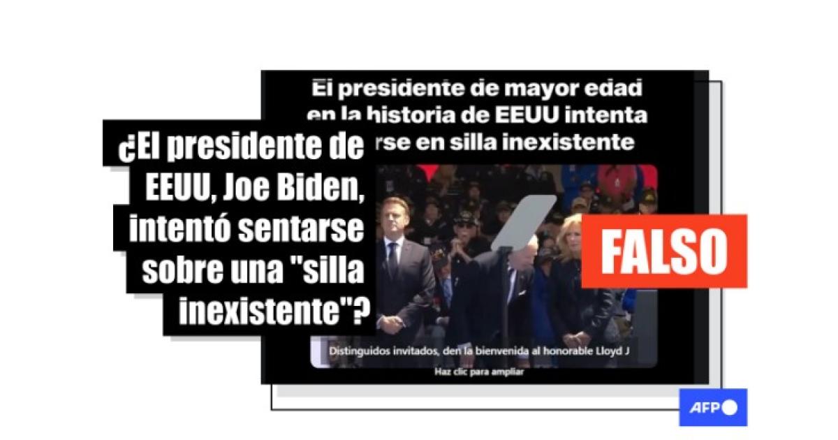 “Biden intenta sentarse en una silla inexistente”, dicen publicaciones en Facebook (1, 2), Instagram (1, 2), Telegram, TikTok (1, 2) y X (1, 2).
