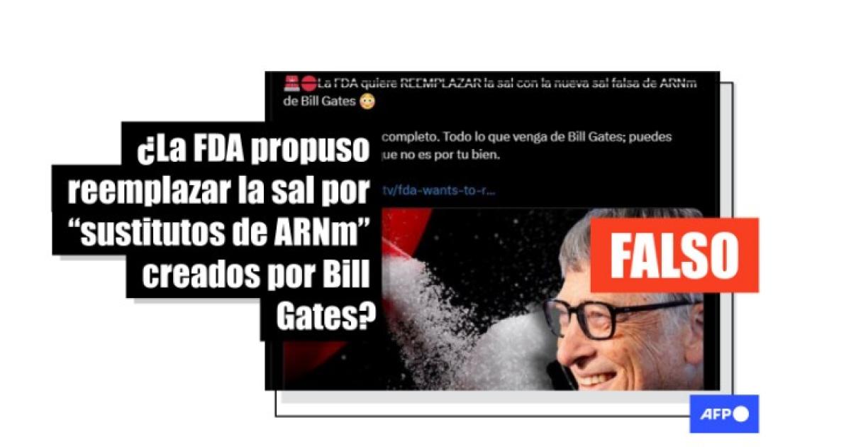 “La FDA quiere reemplazar la sal con la nueva sal falsa de ARNm de Bill Gates”, dicen publicaciones en Facebook (1, 2) y X (1, 2).