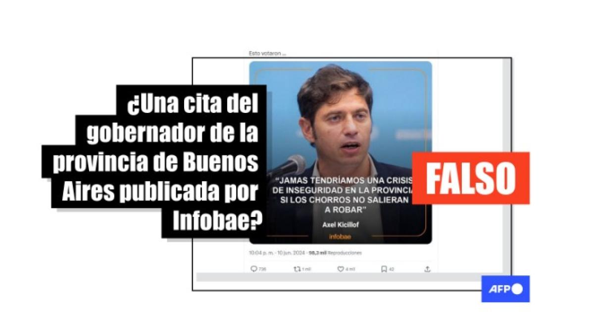 Infobae no publicó una placa con una supuesta cita de Kicillof sobre inseguridad en Buenos Aires