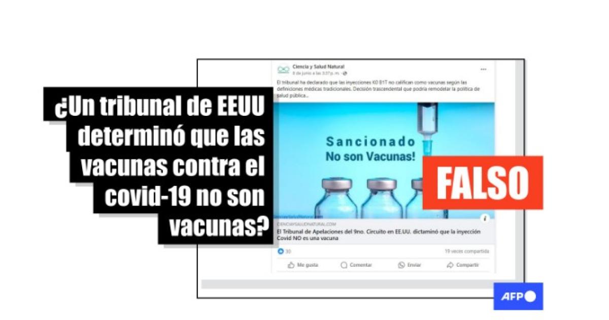 “El Tribunal de Apelaciones del Noveno Circuito de los Estados Unidos ha declarado que las inyecciones de ARNm de COVID-19 no califican como vacunas según las definiciones médicas tradicionales", se lee en una de las publicaciones compartidas en Facebook (1, 2), Instagram y X (1, 2)
