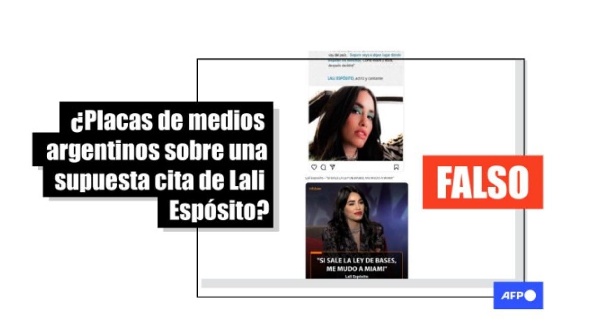 “Por favor q alguien le avisé q la ley ya salió...”, se lee en una de las publicaciones en Facebook y X, que difunden una supuesta placa de Infobae donde supuestamente la cantante afirma: “Si sale la ley de Bases, me mudo a Miami”.