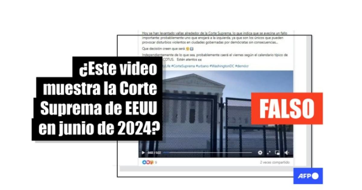 Mitchell Miller, corresponsal del Capitolio de la estación de radio de noticias WTOP y el autor del video original de la Corte Suprema rodeada de vallas, confirmó a la AFP que tomó la grabación en 2022. “Esa cerca se instaló en previsión de la publicación de la decisión Dobbs, que anuló el caso Roe v. Wade, que había protegido los derechos al aborto durante décadas”, señaló el 18 de junio de 2024.