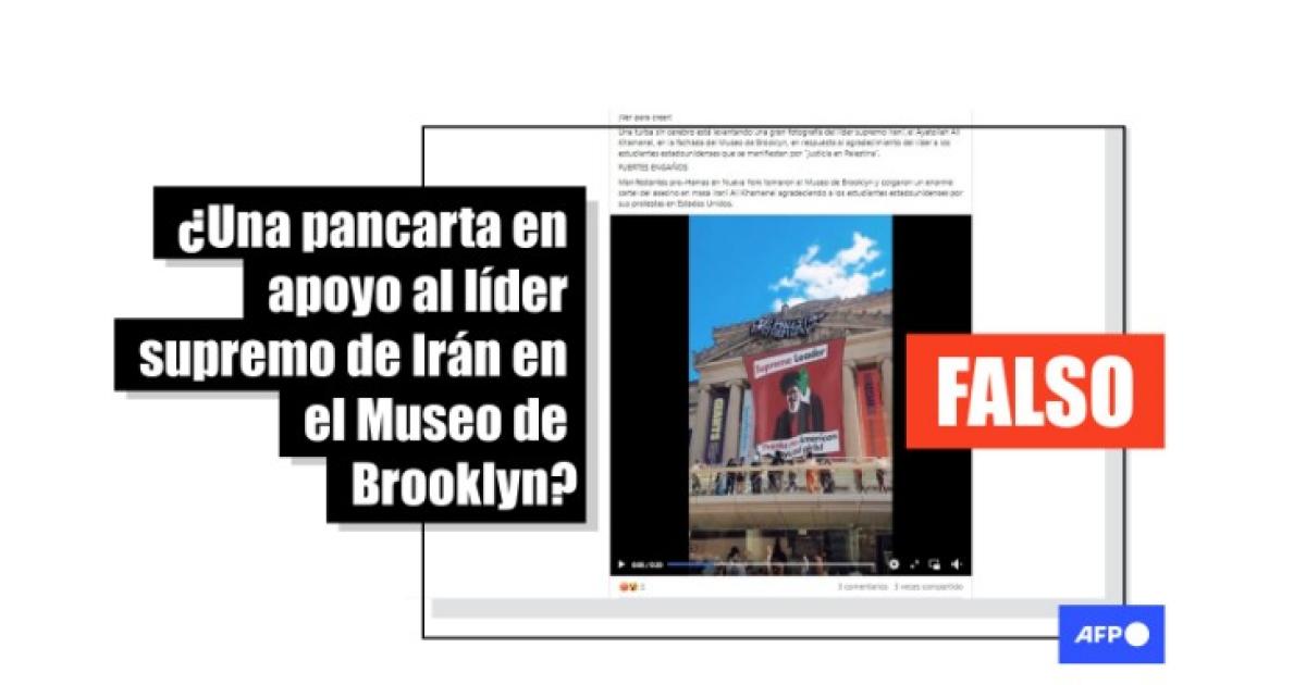 “Manifestantes pro-Hamas en Nueva York tomaron el Museo de Brooklyn y colgaron un enorme cartel del asesino en masa iraní Ali Khamenei agradeciendo a los estudiantes estadounidenses por sus protestas en Estados Unidos”, señalan entradas en Facebook (1, 2), Telegram y X, que incluyen un video del supuesto acontecimiento.