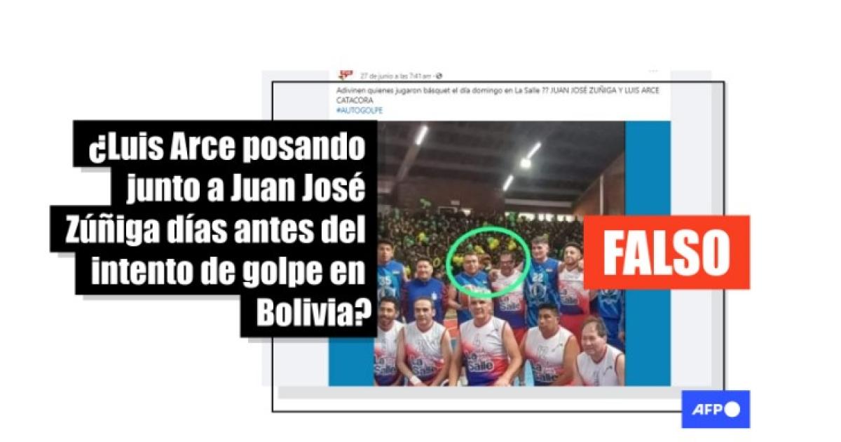 “Adivinen quienes jugaron básquet el día domingo [23 de junio] en La Salle ?? JUAN JOSÉ ZUÑIGA Y LUIS ARCE CATACORA”, afirman publicaciones que circulan en Facebook (1, 2, 3).