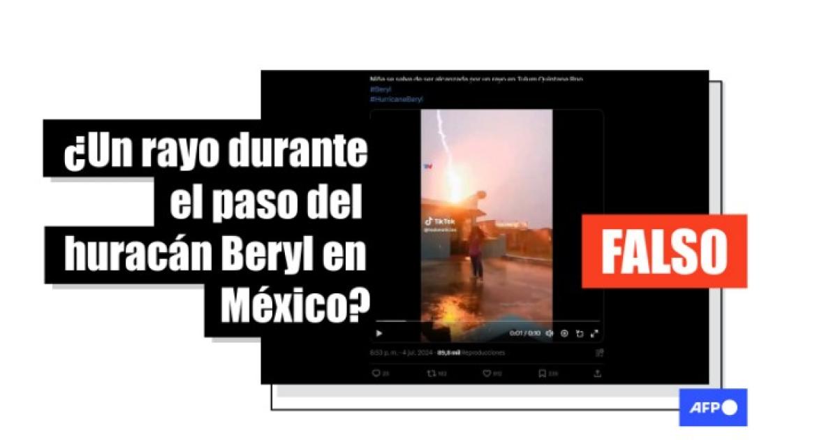 “Niña se salva de ser alcanzada por un rayo en Tulum Quintana Roo por el huracán Beryl”, afirman las publicaciones que circulan en Facebook (1, 2) y X (1, 2).