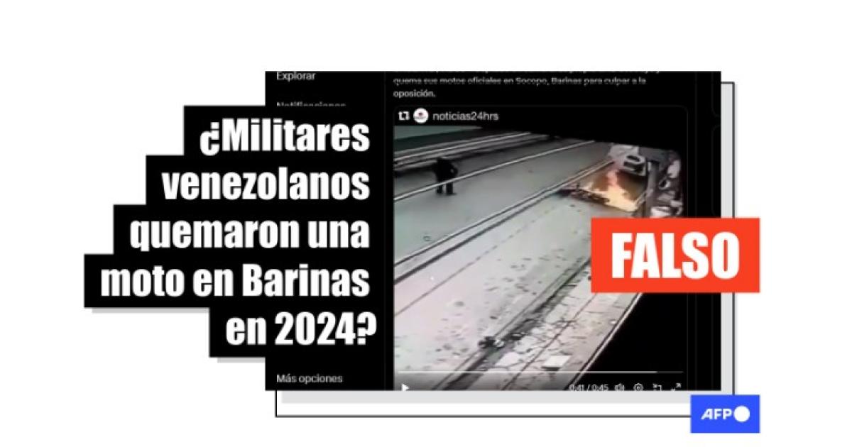 Video de militares quemando una moto en Venezuela se grabó en 2017, no en 2024