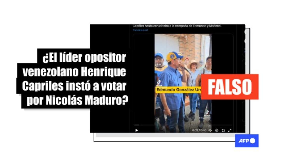 En el video, publicado el pasado 14 de julio y grabado, según su descripción, en Tacarigua, estado de Miranda (norte), se distingue claramente que las críticas de Capriles no están dirigidas a González Urrutia, sino a Maduro. En la versión viral, el audio fue manipulado para intercambiar los nombres, haciendo parecer que el exlegislador criticaba al candidato opositor.