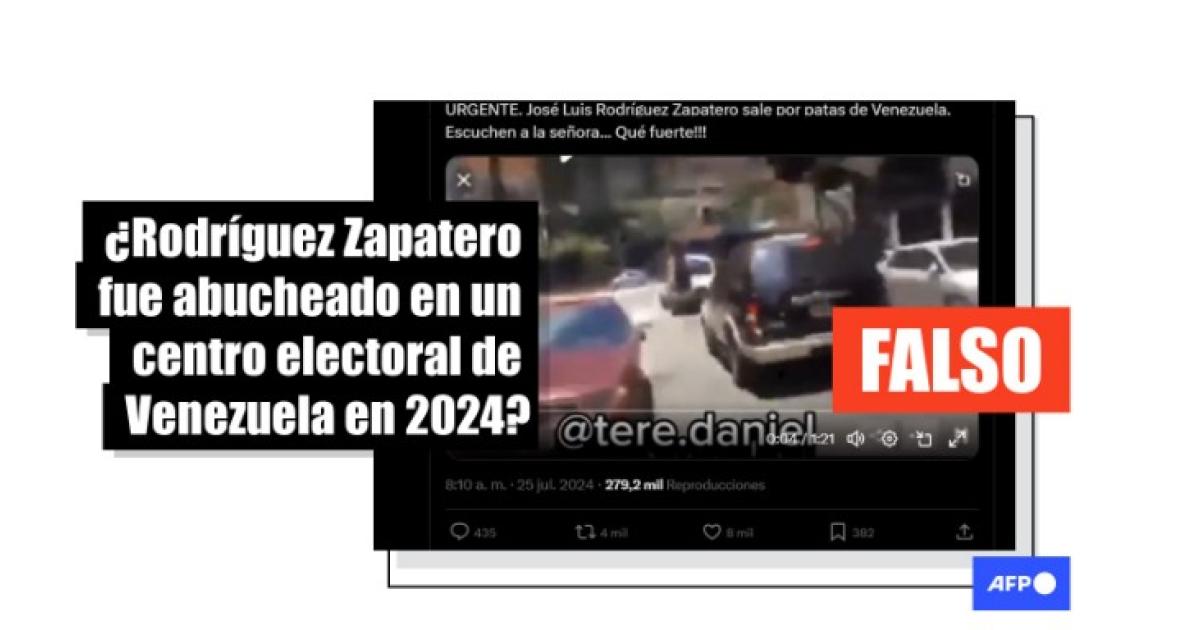 “URGENTE. José Luis Rodríguez Zapatero sale por patas de Venezuela. Escuchen a la señora... Qué fuerte!!!” y “Hace escasos momentos el ex presidente español Rodríguez Zapatero ha tenido que escapar ante los botellazos que le lanzaba el pueblo venezolano, que le detectó en un centro electoral”, señalan publicaciones con el video en X y Facebook (1, 2).