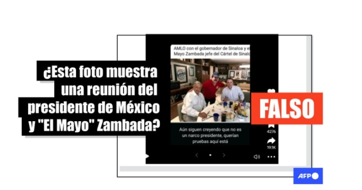 A diferencia de la imagen viralizada, el hombre con camisa roja no tiene el rostro de “El Mayo” Zambada. AFP Factual contactó al negocio en 2019, un representante de este confirmó que quien viste la camisa roja era el dueño de Aguachiles y Callos de Hacha Ramiro’s.