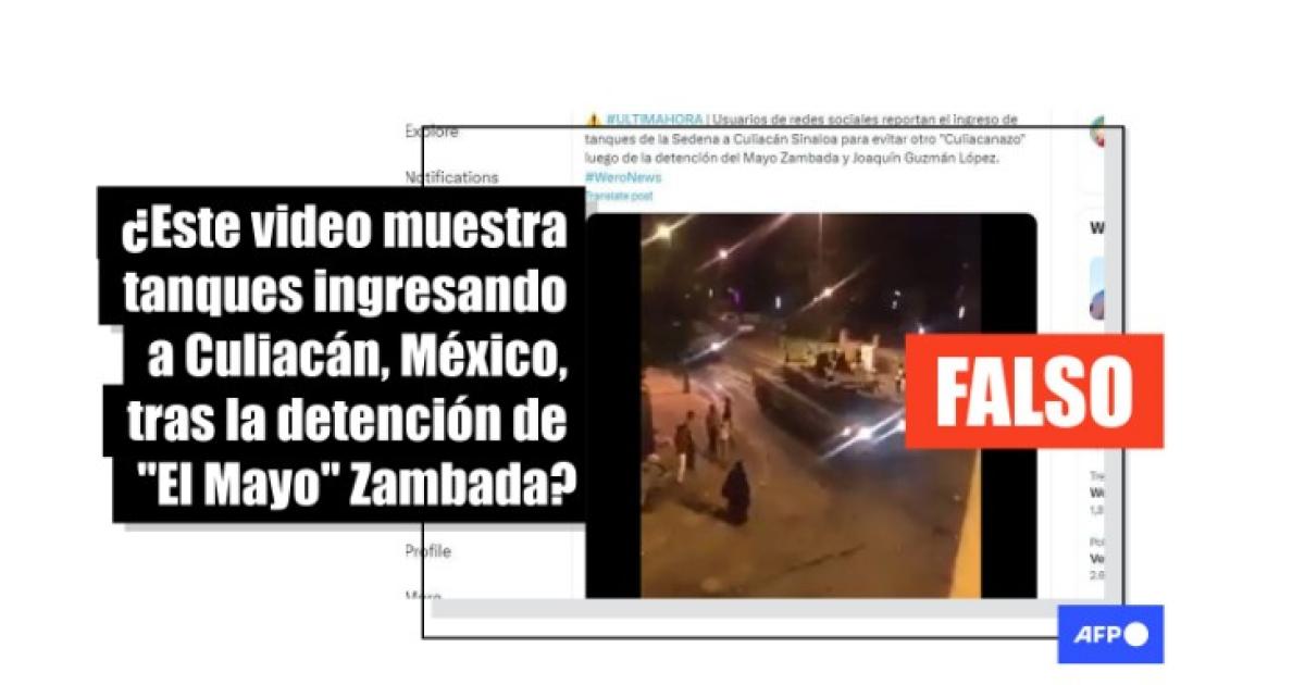 “Usuarios de redes sociales reportan el ingreso de tanques de la Sedena a Culiacán Sinaloa para evitar otro ‘Culiacanazo’ luego de la detención del Mayo Zambada y Joaquín Guzmán López”, dicen publicaciones en Facebook (1, 2) y X (1, 2) con el video.