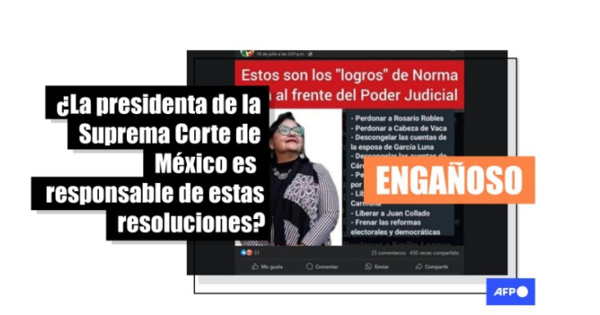 Publicaciones adjudican erróneamente fallos de jueces a la presidenta de la Suprema Corte mexicana